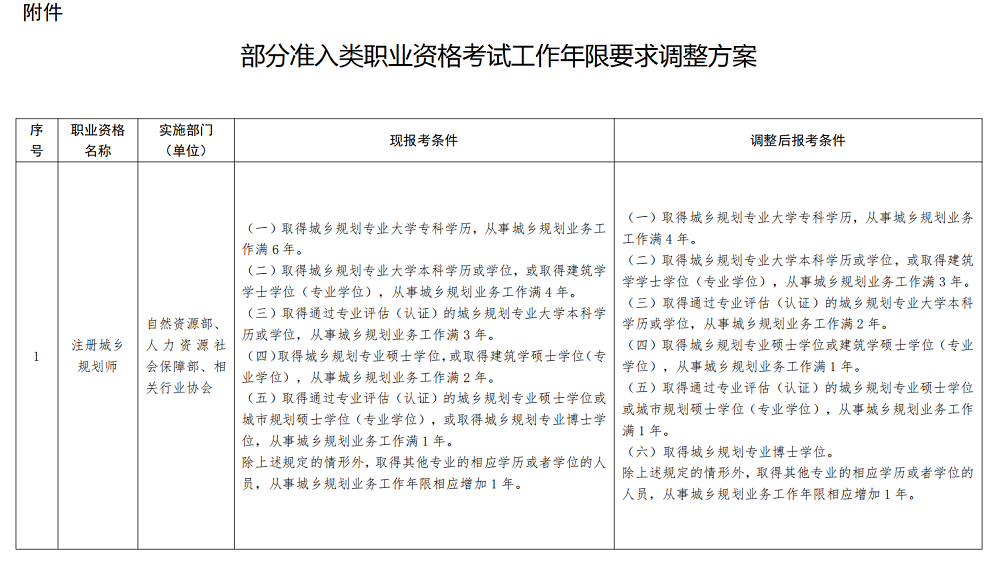 附件:部分准入类职业资格考试工作年限要求调整方案