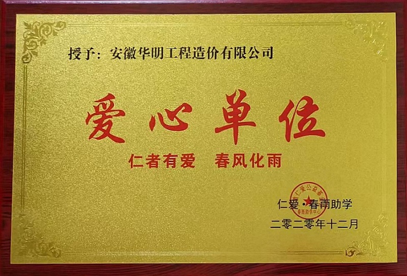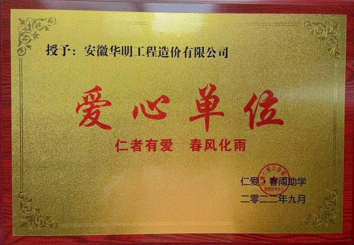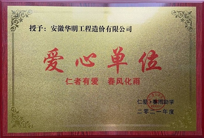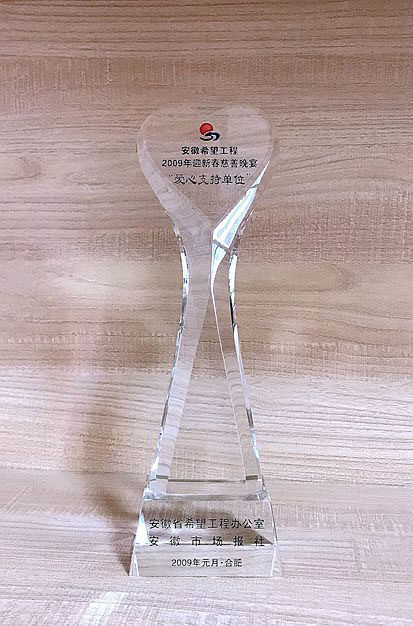2009年被安徽希望工程办公室评为“爱心支持单位”