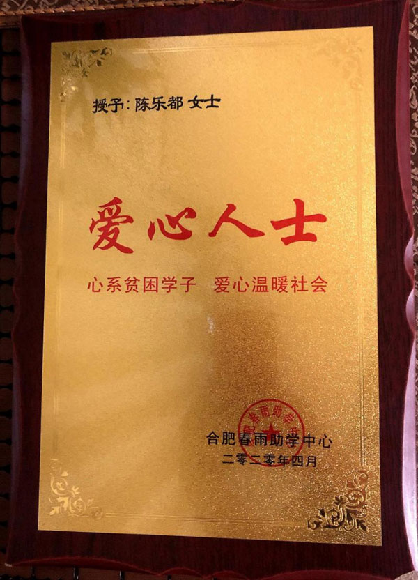 2019年公司总经理被春雨助学中心评为“爱心人士”
