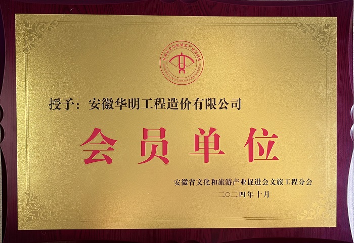 2024年被安徽省文件和旅游产业促进会文旅工程分会评为“会员单位”